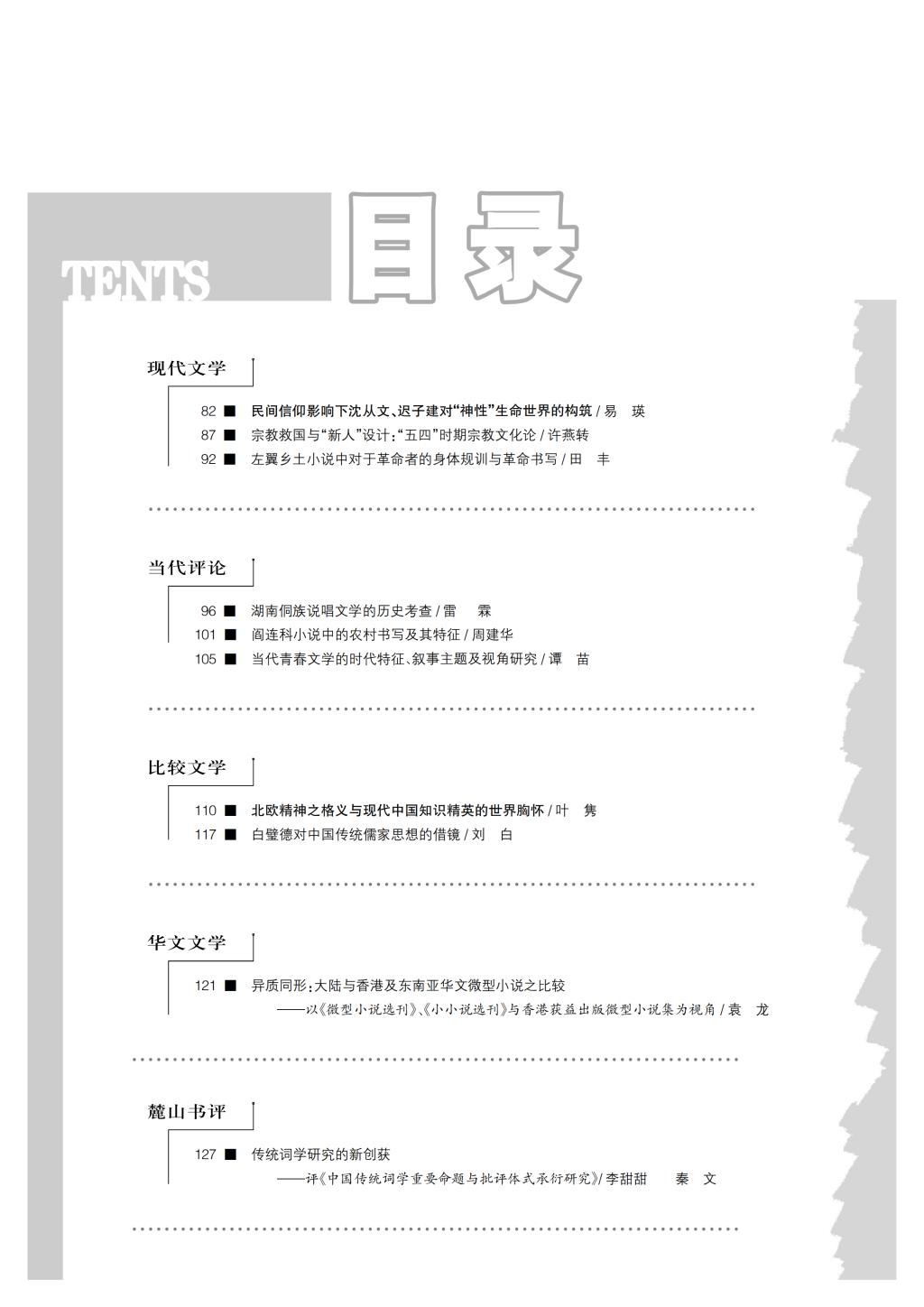 《中国文学研究》2017-1目录