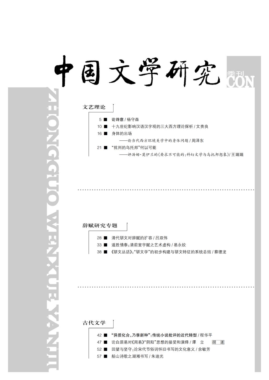 《中国文学研究》2017-3目录