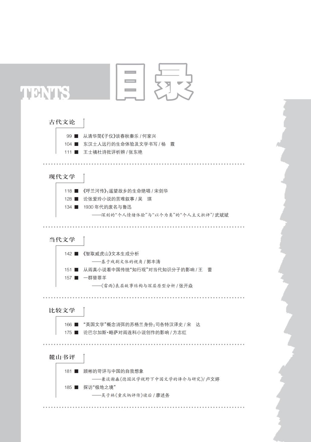 《中国文学研究》2018-2目录