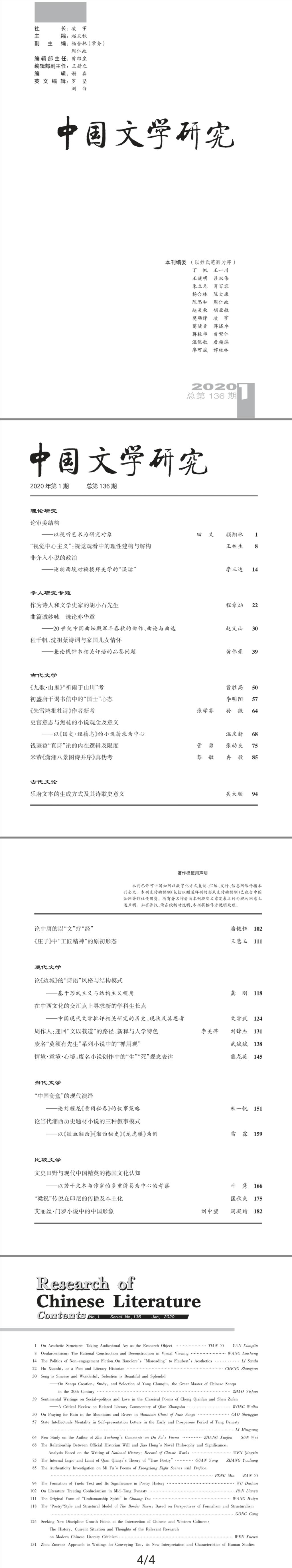 《中国文学研究》2020年第1期总第136期