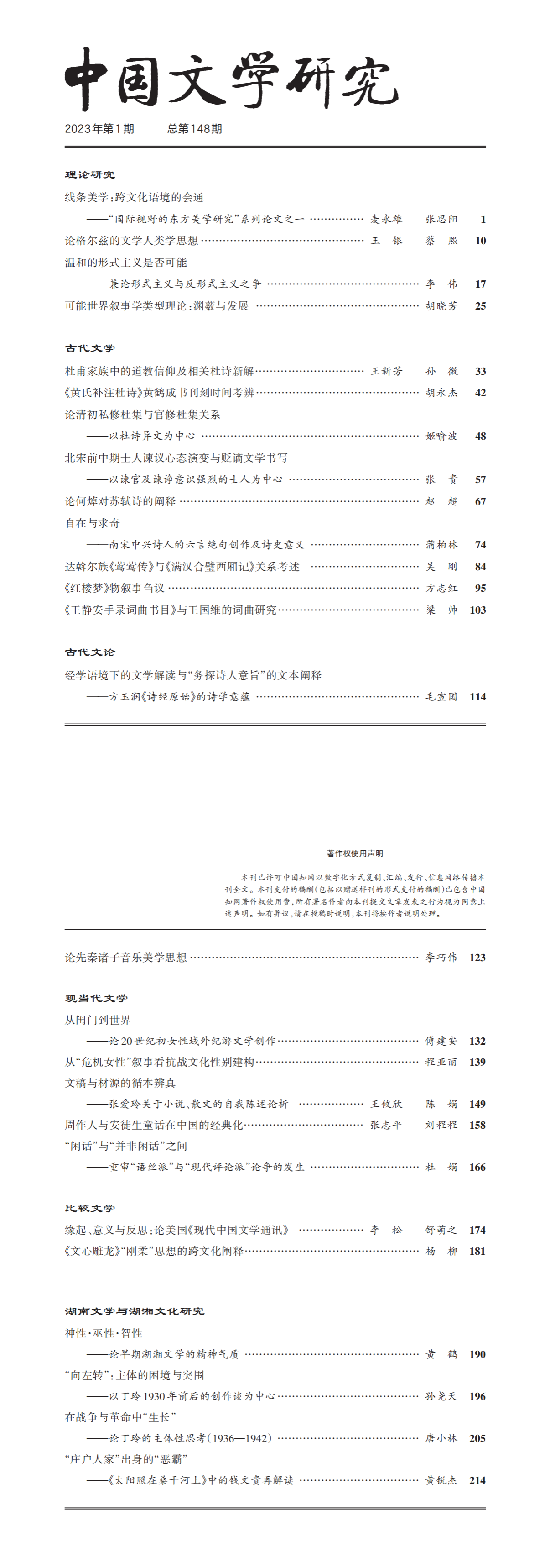 《中国文学研究》2023年第1期总第148期