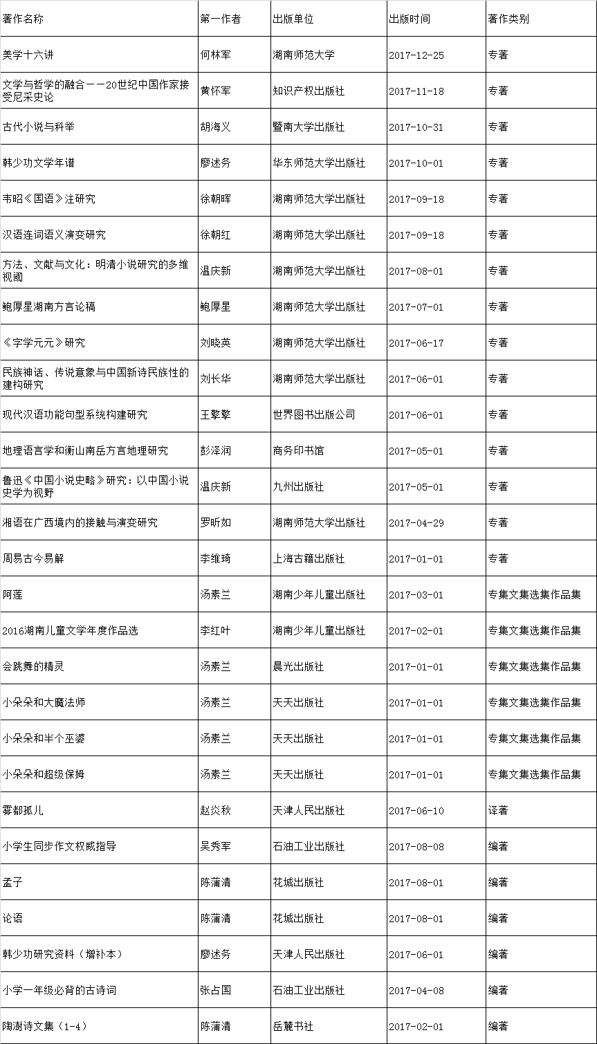 2017年出版的学术著作一览表