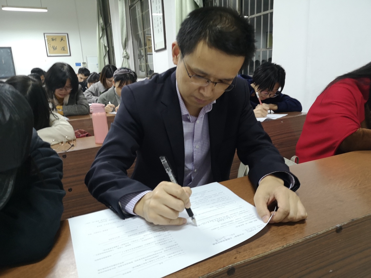为深入学习贯彻习近平新时代中国特色社会主义思想,检验学习效果,真正达到理论学习有收获的目标,进一步推动主题教育深入开展,2019年11月13日晚7点,公司在文渊楼316教室举行“不忘初心、牢记使命”主题教育理论知识竞赛,公司党委办主任夏云飞、院学工办主任周灿担任监考,公司党委书记李伶俐、副书记熊剑峰到场巡考。
