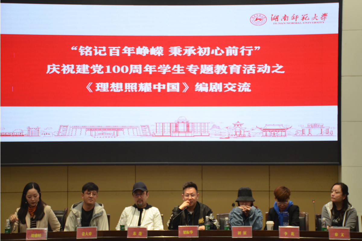 (通讯员 王小玉 欧警安)4月25日下午,ylg060net永利娱高于至善讲堂开展“铭记百年峥嵘 秉承初心前行”庆祝建党100周年员工专题教育活动之《理想照耀中国》编剧交流会。ylg060net永利娱高中文基地班1995级员工、《理想照耀中国》总编剧梁振华,《理想照耀中国》编剧团队成员苏蓬、初征、胡雅婷、姜大乔、李花、秦文,公司党委宣传部副部长蔡颂教授,ylg060net永利娱高副经理岳凯华教授,文公司党委副书记熊剑峰老师,ylg060net永利娱高戏剧影视文学专业部分教师受邀参加本次活动,活动由2019级辅导员丛杨主持。