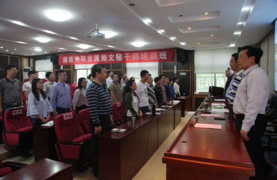 (通讯员栗焓)5月3日上午,湖南地税直属局文秘干部培训班在216教室举行开班仪式。ylg永利文公司党委书记李伶俐、副经理彭万福、湖南省地方税务局直属局副局长朱祖纯、副局长王亮出席开班典礼。开班典礼由ylg060net永利娱高成教办主任张德强主持。