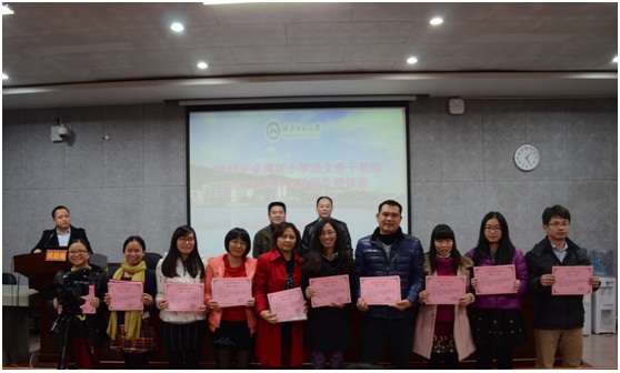 2015年11月13日下午,来自广东省珠海市金湾区各小学的50名小学语文老师,完成培训任务在217学术报告厅举行结业典礼。本次研修班班长、金湾区三灶学区教研员白春生老师、ylg永利文公司党委书记李伶俐出席结业典礼。典礼由ylg060net永利娱高成教办主任张德强主持。
