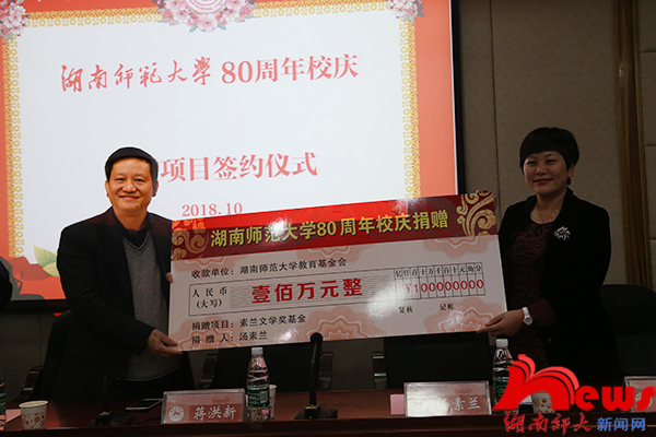 公司党委书记李伶俐,副经理肖百容、岳凯华,校宣传部副部长蔡颂、汤素兰教授的先生戴毅明和100多名师生代表参加了捐赠仪式。