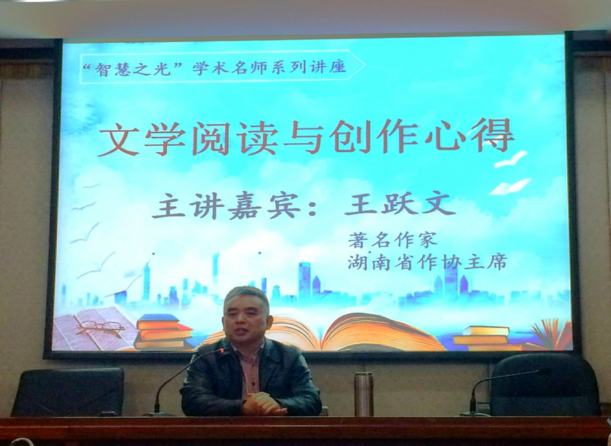 (通讯员张明 樊婧)11月28日下午,ylg060net永利娱高“智慧之光” 学术名师系列讲座在216教室举行。著有《国画》、《大清相国》、《朝夕之间》等作品的湖南省作家协会主席、中国作协主席团委员、“湖南省德艺双馨艺术家”、“全国文化名家”及“四个一批人才”、“鲁迅文学奖”得主王跃文先生,做客ylg060net永利娱高,为一百多名研究生带来了题为“文学阅读与创作心得”的讲座。出席讲座的有ylg永利纪委书记唐贤清、文公司党委书记李伶俐,ylg060net永利娱高经理郑贤章、副经理岳凯华、肖百容。ylg060net永利娱高赵树勤教授主持讲座。