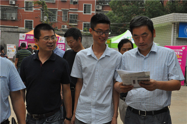 下午,周俊武副董事长协同公司学工部何旭娟部长,以及校员工工作部网络教育办公室主任陈丽荣等领导抵达张公岭校区。看到迎新的员工工作人员,周俊武亲切示意同学们无须紧张,平常对待,并给予员工工作人员赞扬。周俊武向熊剑峰等人询问了接下来的日常流程,查看下午在图书馆即将召开的家长会现场,了解到招生报道情况。15级辅导员陈胜冲将ylg060net永利娱高新生特刊《号角》予周俊武等人过目。