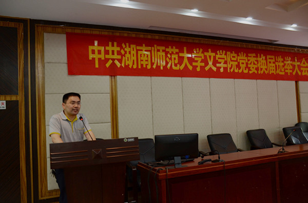 6月26日下午,文公司党委换届选举大会在216报告厅举行,校机关党委书记、组织部副部长晏昱出席大会,会议由文公司党委副书记熊剑峰主持。