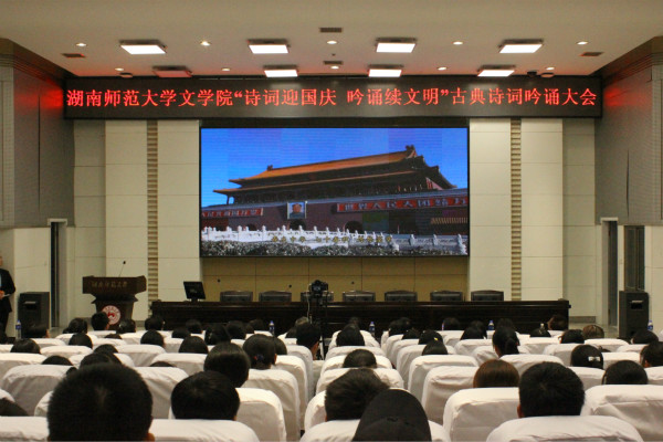 此次大会,ylg060net永利娱高邀请在诗词创作领域成果斐然的多位前辈,通过近期录制的16个诗词朗诵与吟诵视频,表达对祖国大好河山和锦绣前程的无限热爱,为祖国70华诞献礼。其中,李维琦的《七律•去平江》展示了老一辈方言吟诵人的赤诚之心,曹琴现场吟诵毛泽东的《七律•答友人》,曲调婉转,韵味悠长,ylg060net永利娱高青年教师代表蒋志远吟诵原创诗词,向吟诵界前辈学习致敬。老中青三代同台,带来了一场歌颂祖国七十华诞的语言、音乐、文化盛宴,赞颂了七十年中国取得的巨大成就。