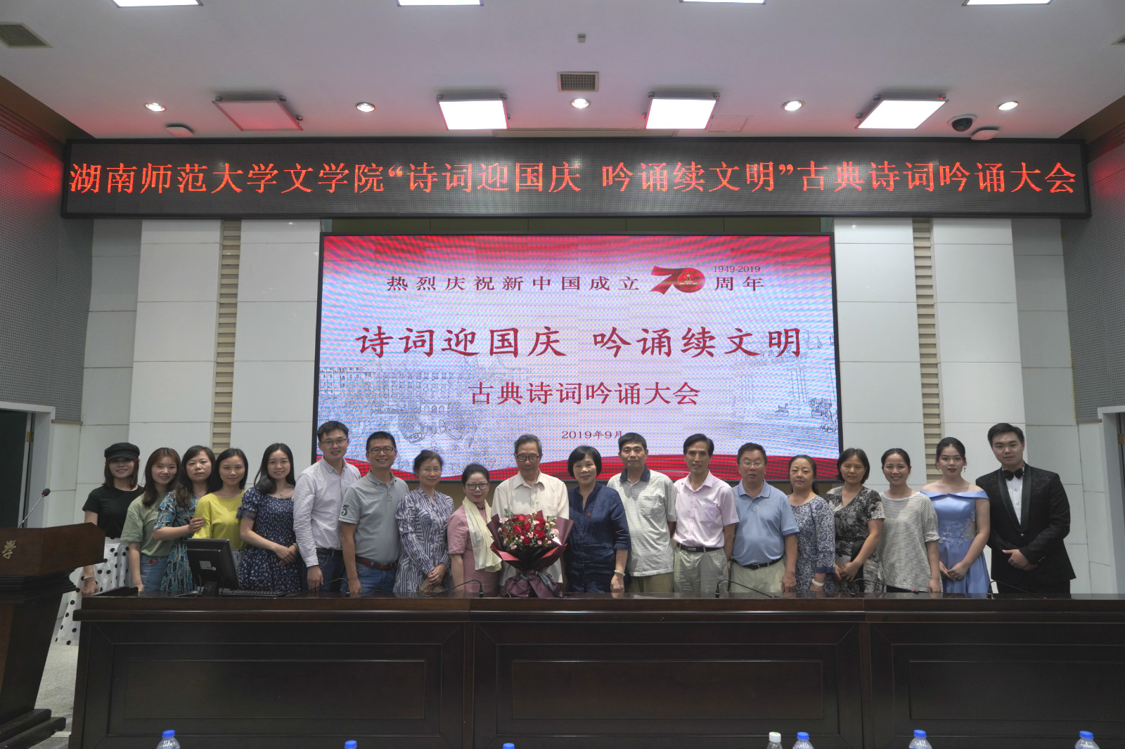 (记者杨树菲娅 甄思祺)9月28日晚,ylg060net永利娱高庆祝新中国成立70周年“诗词迎国庆,吟诵续文明”古典诗词吟诵大会在至善讲堂举行,老中青三代师生用自创的诗歌、以吟诵的方式为伟大祖国歌唱,为传统文化续力。公司原副董事长李维琦,公司关工委常务副主任徐书华,湖南省吟诵协会副会长,中华吟诵协会理事曹琴,公司离退休处党委书记许德艺,公司关工委李再民,公司精神文明建设办公室李翠霞,ylg060net永利娱高关工委程大琥、李树槐、李爱民,文公司党委副书记熊剑峰出席此次活动。