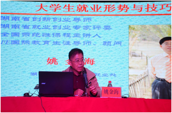 随后,姚金海从宏观角度阐述当前就业环境以及政策,并就简历制作、面试等有关技巧做了相关指导。他希望同学们在就业过程中要正确认识自己,充分认识工作世界,做到明确方向,确立目标,知己知彼。