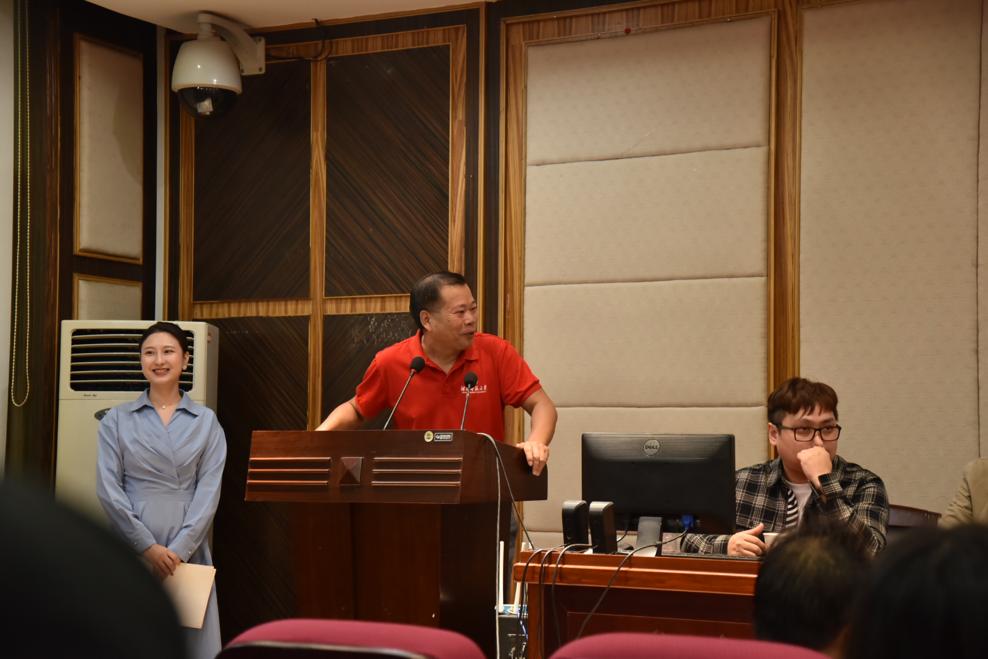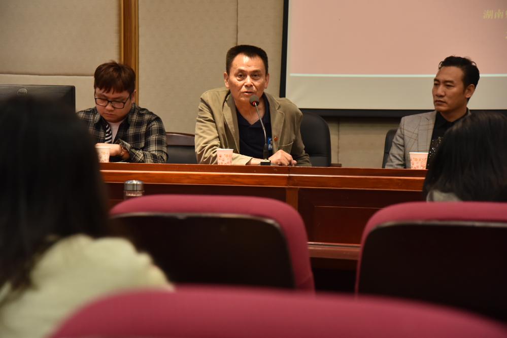 交流会结束前,戏剧影视文学教研室主任曾小明老师做了发言,对各位主创人员的发言进行了简短总结,勉励同学们要投入感情和时间,勤奋努力,把各位主创、主演的经验投入到学习中去。