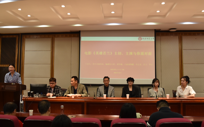(通讯员 王睿)10月9日上午,向建党100周年华诞献礼的主旋律电影《英雄若兰》导演周琦与主要演员刘筠燃(饰演伍若兰)、肖宗灵(饰演朱德)、许言(饰演侄女)、罗山(饰演曾志)等主创、主要团队成员前来216教室,与电影、戏剧与影视学等专业研究生和戏剧影视文学、创意写作与演说等专业(方向)本科生进行了一场轻松而欢快的电影创作经验交流分享会。交流会由20级电影专业硕士研究生张秀娟同学主持,戏剧影视文学专业系曾小明、黄茵、刘库、傅异星、李婕等老师参加了交流会。。