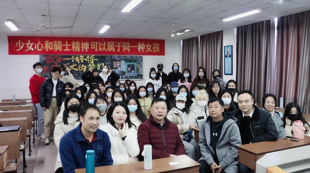 此次讲座由戏剧影视文学系教师李婕主持,副经理岳凯华、戏剧影视文学教研室主任曾小明、爱剪辑公司总裁易金一同到场,21级戏剧影视班全体同学参加。