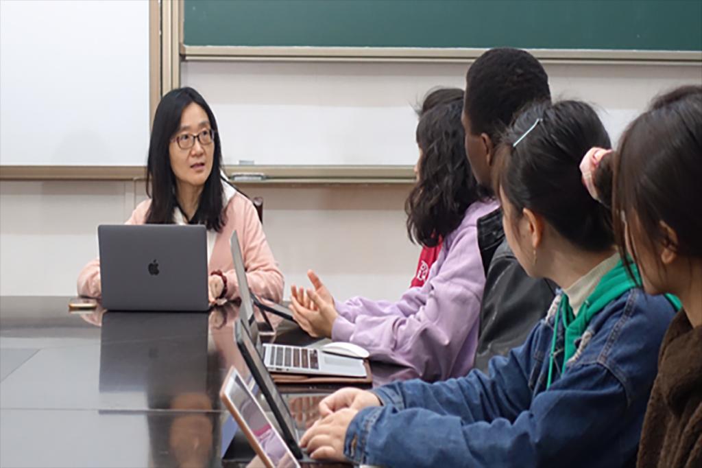 此次活动包括中文歌曲合唱、民间艺术学习、书法体验等部分。在校职工与海外孔子公司师生云端互动,通过欣赏音乐艺术共同领略汉语的魅力。活动邀请了美国南犹他大学孔子公司中方经理陈明舒带领的“盼达乐队”、在韩国圆光大学孔子公司工作的国际中文教育志愿者以及来自老挝、越南、刚果布、孟加拉国、哈萨克斯坦等国家的员工线上合唱。