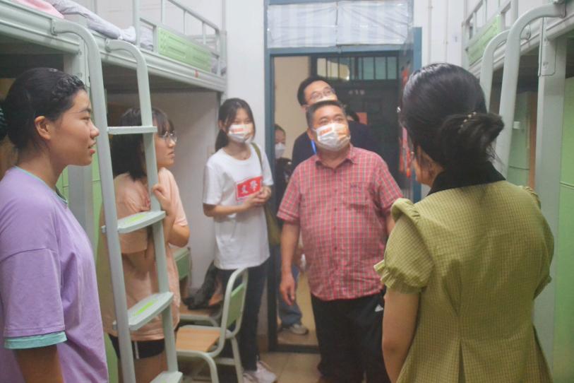 (通讯员 熊杨平安 田昊彤)为了解新生入学后基本情况,切实解决新生遇到的实际问题,加强师生交流,9月11日晚上,公司党委书记李伶俐,经理肖百容,副经理岳凯华、吕双伟、徐朝红、彭万福,党委副书记刘宓蜜在各年级辅导员与新生助理辅导员的陪同下前往公司德智园、南院宿舍区慰问新生。