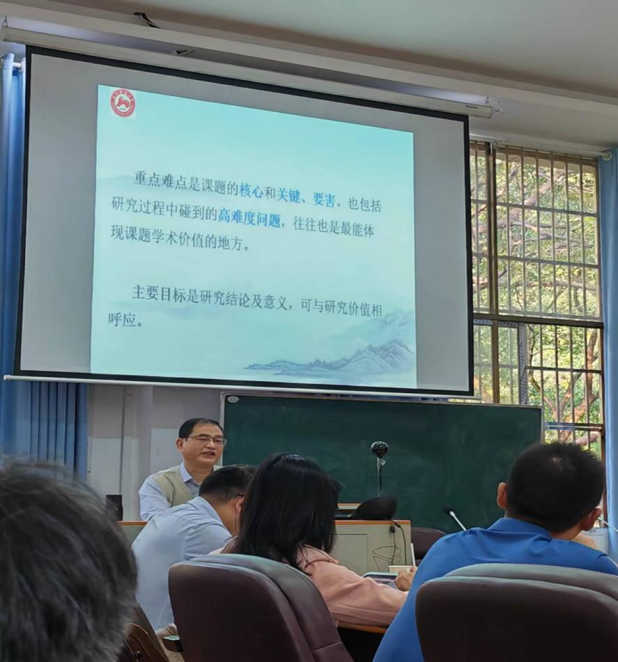 杨合林教授围绕“国家社科基金项目为什么如此重要”、“如何破解项目申报难题”、“如何写好项目申报书”等三大核心问题展开,有的放矢,分析精准,视野广阔,举例生动,让与会教师受益匪浅。杨合林教授首先界定了国家社科基金项目的重要性:科研项目尤其是国家社科基金项目是公司、公司、学科发展的战略资源和战略制高点,是科研工作的牛鼻子,也是个人成长的垫脚石。接着,他从经费来源、学术实力与学术话语权、成果产出、人才队伍建设、“双一流”建设的重要评价指标等五个方面详尽阐明了这一重要性。