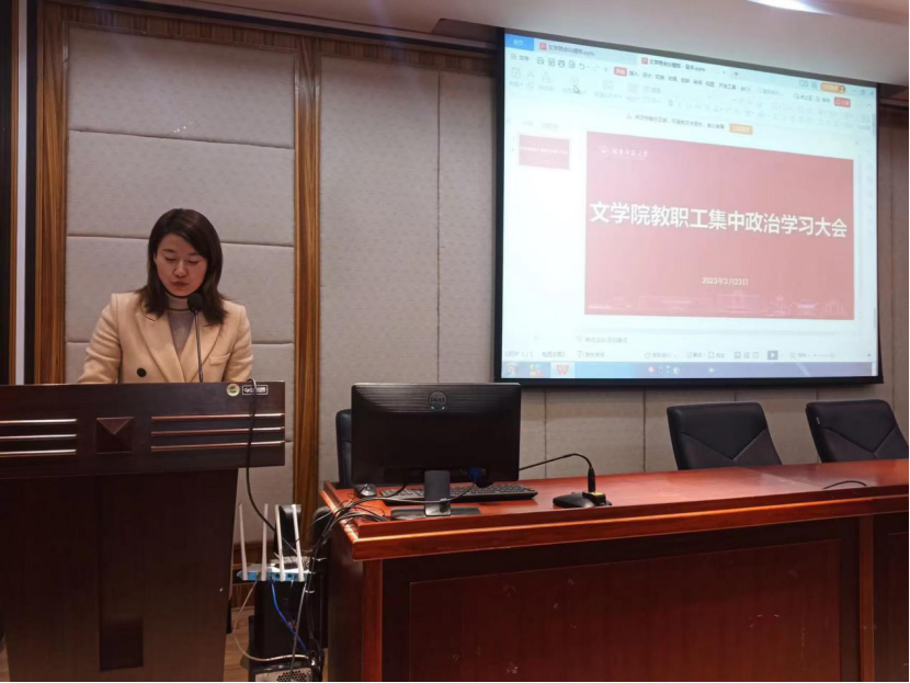 刘宓蜜组织学习了习近平总书记的重要讲话,解读了政府工作报告要点,原文学习了教育部、湖南省传达学习2023年全国“两会”精神简报,引导教职工把思想政治教育工作贯穿于教学全过程和各环节中,自觉承担起立德树人的职责使命。