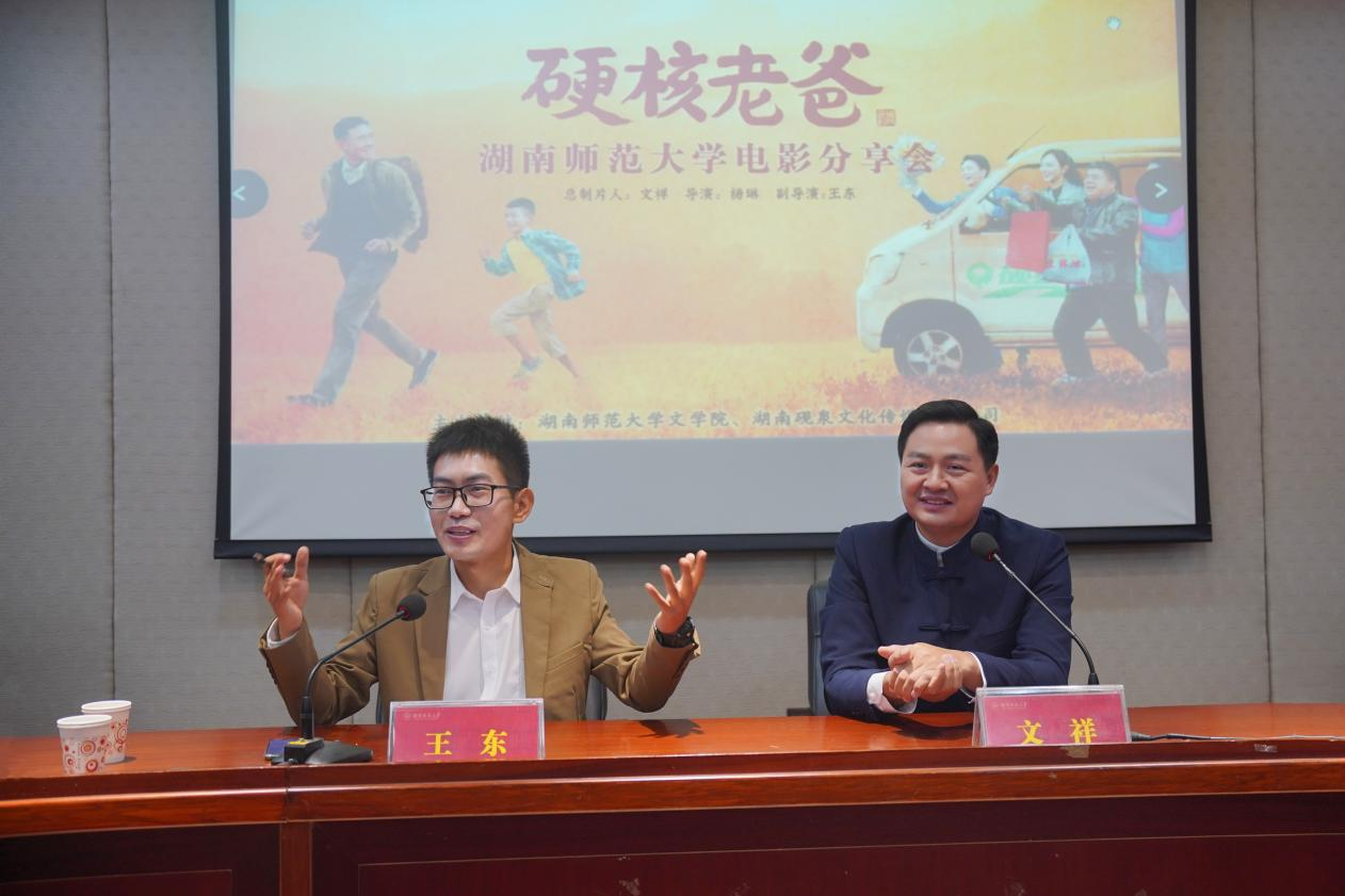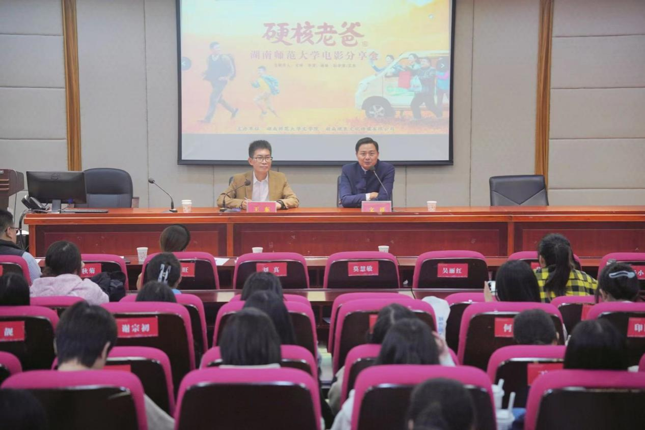 (通讯员刘库)11月10日下午,由ylg060net永利娱高、湖南砚泉文化传媒有限公司主办的电影《硬核老爸》观影分享会暨文祥“电影追梦人”主题演讲在216教室开展。湖南砚泉文化传媒有限公司董事长文祥,湖南省电影评论协会秘书长王东,ylg永利文公司党委副书记刘宓蜜,ylg060net永利娱高戏剧影视文学系专任教师刘库,ylg060net永利娱高本科生与研究生等参加活动。活动由省广播电视台导演、省电影评论协会秘书长王东主持。
