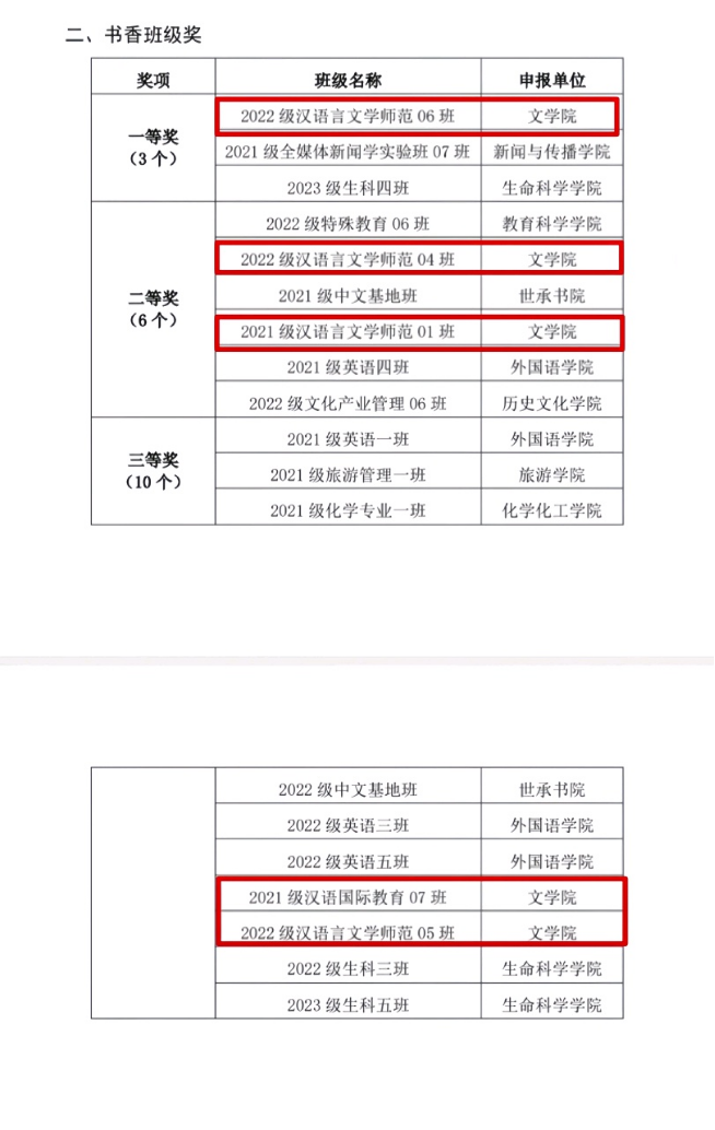 (通讯员张尧钰)近日,在由湖南省教育厅、省高等公司图书情报工作委员会主办的全省普通高校共同参加的2023年“一校一书”阅读推广活动中,2022级汉语言文学(师范)6班获评湖南省普通高校“书香班级”荣誉称号。
