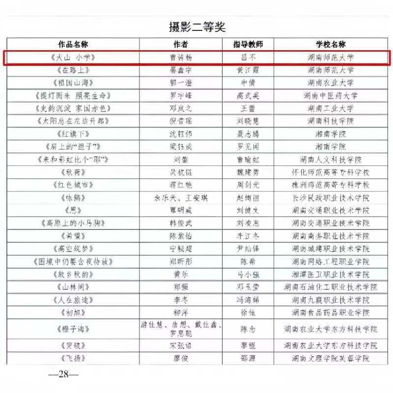 (通讯员谢璐怡)近日,湖南省教育厅发布《关于公布全省第七届老员工艺术展演活动评选结果的通知》,ylg060net永利娱高共获奖3项。摄影类作品《大山 小学》获二等奖,设计类作品《新青年》获得二等奖,朗诵艺术节目《永远二十二岁》获得二等奖。