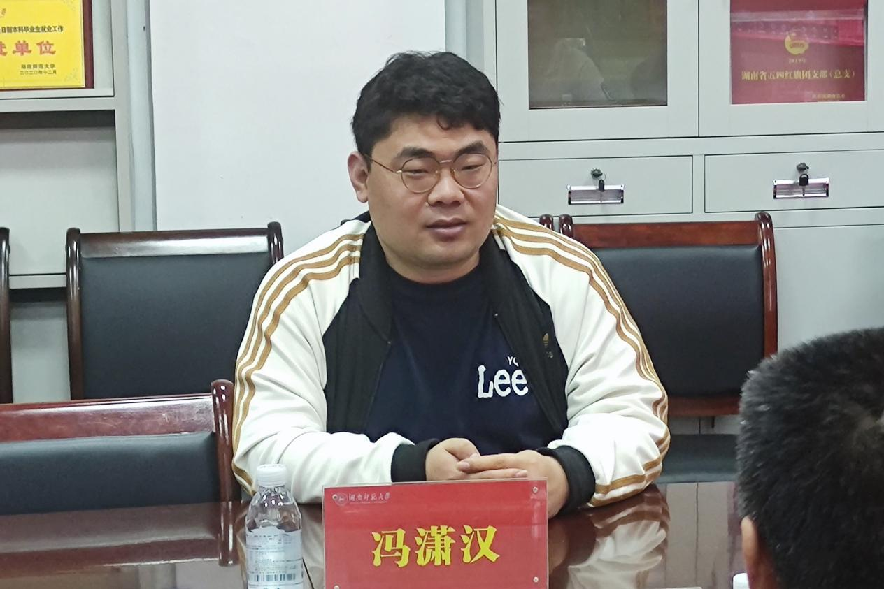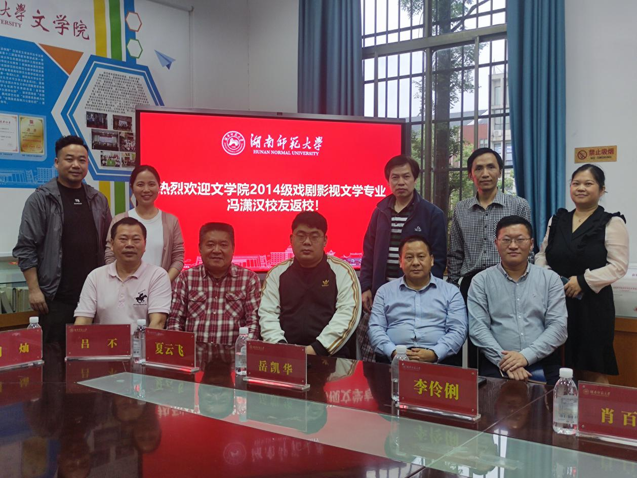 (通讯员张尧钰王辰瑶)4月16日下午,公司2014级戏剧影视文学专业优秀员工冯潇汉回访母校。党委书记李伶俐、经理肖百容、副经理岳凯华、副经理周凯兴、副处专职组织员夏云飞、戏剧影视文学系系主任胡海义、学工办主任周灿,专业教师高欢欢、吕不出席座谈会。
