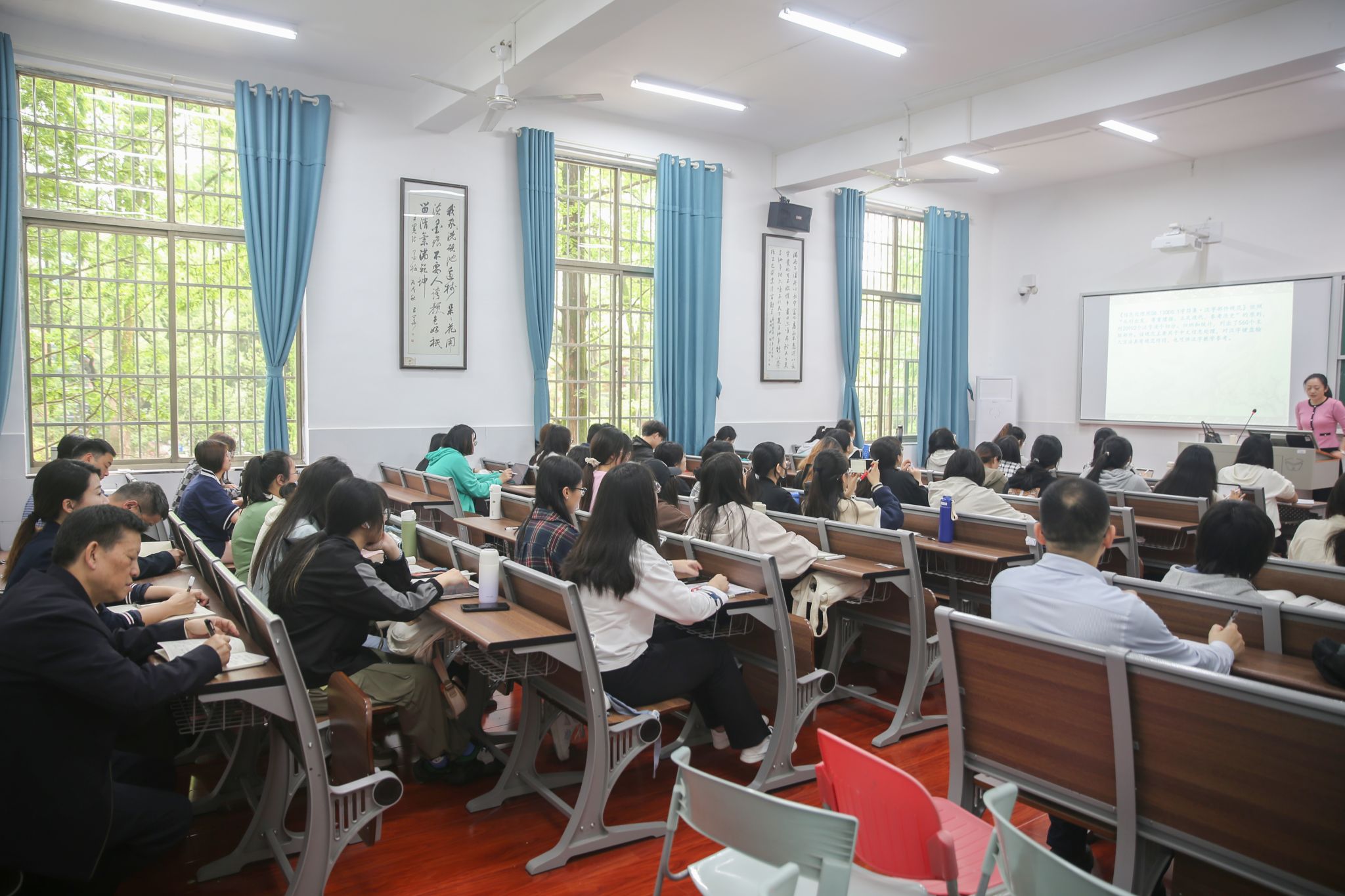 蒋洪新深入本科生课堂,分别听取ylg060net永利娱高副教授唐智芳讲授的课程《汉字解析与教学》和历史文化公司副教授彭丽华讲授的课程《隋唐史》,对她们的精心备课、课堂讲授、教学组织表示肯定。课后,与老师们就教学形式、教学内容等方面进行了交流,勉励他们继续做好新时代教书育人工作。