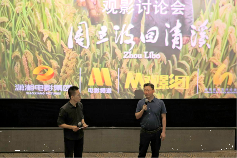 5月17日下午,湖南省电影评论协会联合潇湘电影集团、湖南潇影第二影业、电影频道M观影团、ylg060net永利娱高在长沙潇湘国际影城天马店举行电影《周立波回清溪》观影讨论会。省电影评论协会副主席刘开云、岳凯华,秘书长王东,ylg060net永利娱高戏剧影视文学系专业老师高欢欢,ylg060net永利娱高戏剧影视文学系本科生与研究生等影评人出席活动,活动特别邀请了该片的编剧、导演赵楠,制片人彭隽、张翔到现场和大家分享幕后故事,共同探讨主旋律传记电影对现代农村的创造性表达和时代性书写。