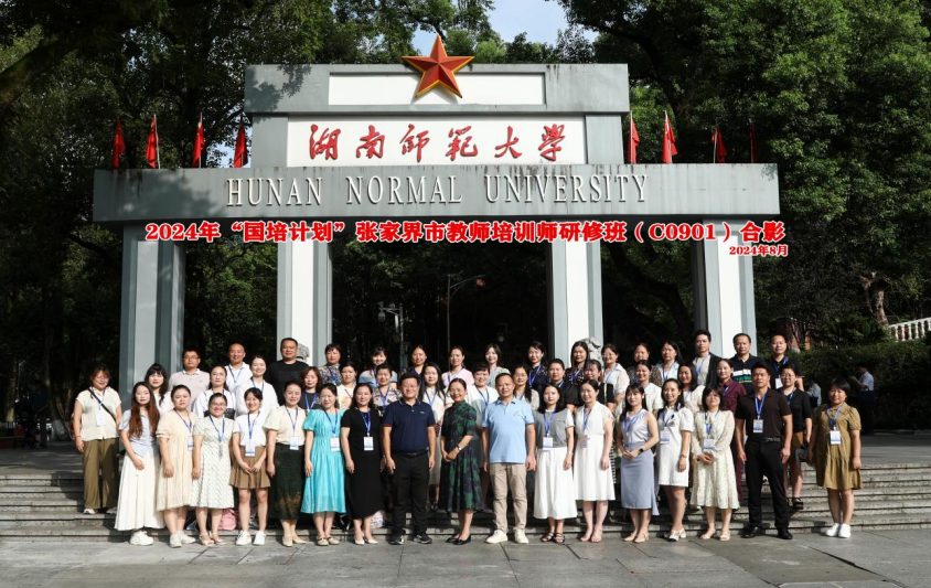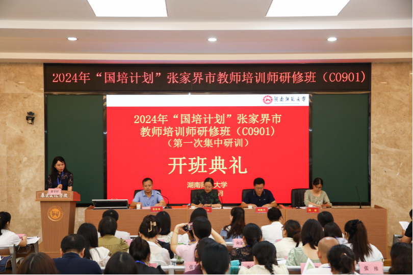 8月19日上午,2024年“国培计划”张家界市教师培训师研修班在文渊楼203报告厅举行开班仪式。ylg060net永利娱高副经理周凯兴、ylg060net永利娱高副教授周敏、张家界市团队培训中心主任佘红英、张家界市国培市级管理员刘双全以及44名学员参加开班仪式。