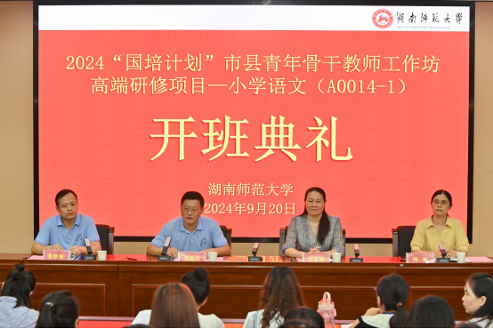 9月20日,由湖南省教育厅主办,ylg永利承办的2024年“国培计划”市县青年骨干教师工作坊高端研修项目—小学语文(A0014-1)线下研修培训班如期举行。来自株洲市和张家界市的40名骨干教师参加了本次培训。ylg060net永利娱高副经理周凯兴、副教授周敏,湖南省教育科学研究院小学语文教研员、全国小语会特级教师研究中心委员刘亚雄参加开班典礼。