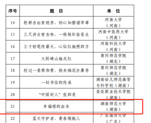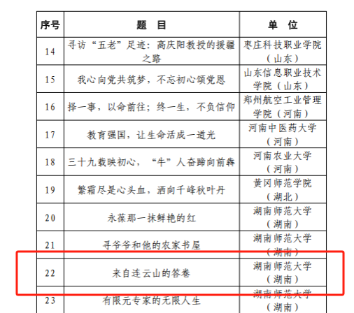 其中,汉语言文学专业2023级本科生上官思涵创作的征文《来自连云山的答案》荣获教育部关工委最佳征文奖;楚魂戏剧社创作排演的舞台剧《山村轮椅教师》获教育部关工委最佳舞台剧;公司学子与生命科学公司合作的微视频《幸福感的由来》获教育部关工委最佳微视频。