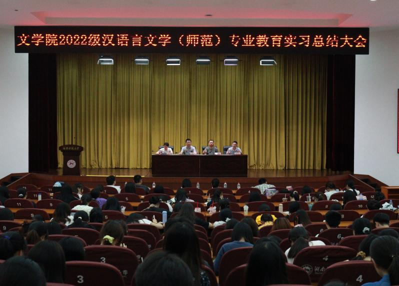 (通讯员 黄迎迎 陈晓岚 赵晨彤)5月30日下午,2022级汉语言文学(师范)专业于ylg永利国际学术报告厅召开教育实习总结大会,公司党委书记熊剑峰、教学副经理岳凯华、党委副书记刘宓蜜、中文系副主任刘光成、实习指导老师代表以及全体实习生参加会议,会议由韩淇主持。
