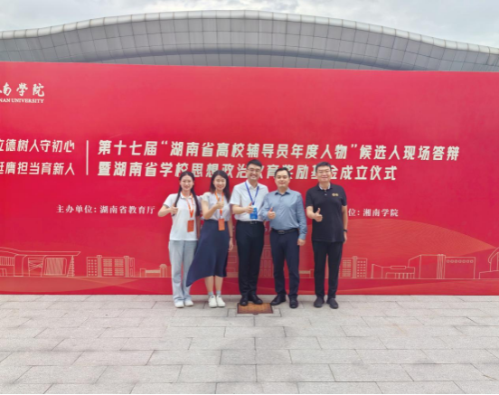 6月26日,由湖南省教育厅主办、湖南出版投资控股集团协办、湘南公司承办的湖南省公司思想政治教育奖励基金成立仪式暨第十七届“湖南省高校辅导员年度人物”候选人现场答辩活动在湘南公司举行。我院辅导员丛杨以答辩总分第一的成绩荣获第十七届“湖南省高校辅导员年度人物”荣誉称号,并获2025年湖南省公司思政教育奖励基金年度影响力人物称号。