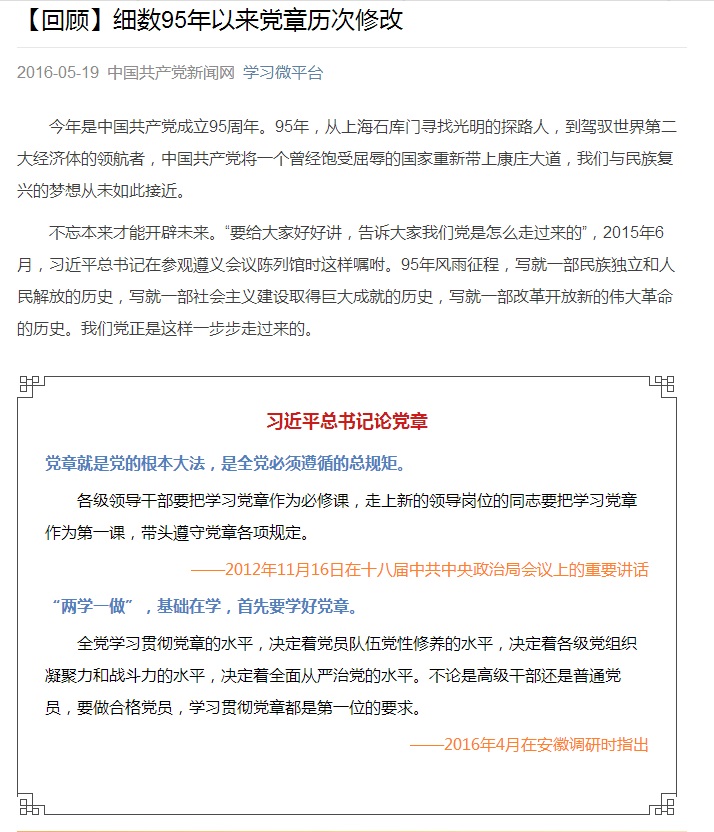 中国共产党党的建设学习资料系列之三细数95年以来党章历次修改
