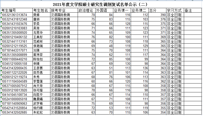 2021年攻读硕士学位研究生调剂复试结果(一)