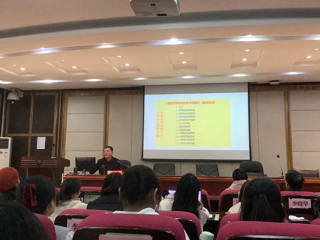 (通讯员 林梅 梁玉杉)12月17日上午,天津师范大学汉语言文字学专业学科带头人、博士生导师温锁林教授受邀在216作“准定语现象的思考与新解”讲座。讲座由ylg060net永利娱高现代汉语教研室主任丁加勇教授主持,公司教师曾常红、胡乘玲及部分研究生、本科生参加了本次讲座。