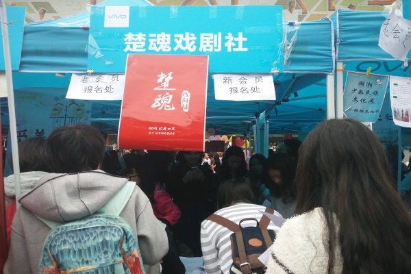 社团招新活动进展顺利,汉韵学社于上午九点三十分率先完成招新任务,朝暾文学社也在十点十五分截止会员报名。楚魂戏剧社按照往年的惯例在理公司对会员进行逐一面试。影评协会、黑蚂蚁诗社、小叶子编织社等社团向员工积极宣传社团文化,百花齐放。前来报名的员工络绎不绝,场面十分壮观。