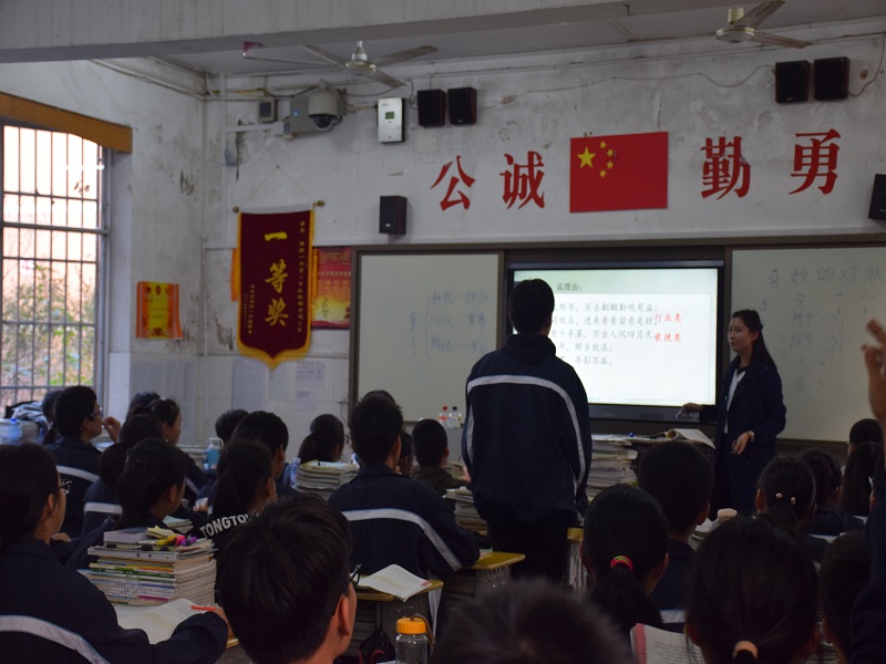 11月5日下午,ylg060net永利娱高湘阴一中实习队队长高在心作为全队代表上公开课。ylg060net永利娱高副经理岳凯华、中文系系主任吕双伟、实习队指导老师李霞、2013级辅导员欧阳唯一、湘阴一中高一年级主任胡文兵出席并评课,实习队队员旁听。