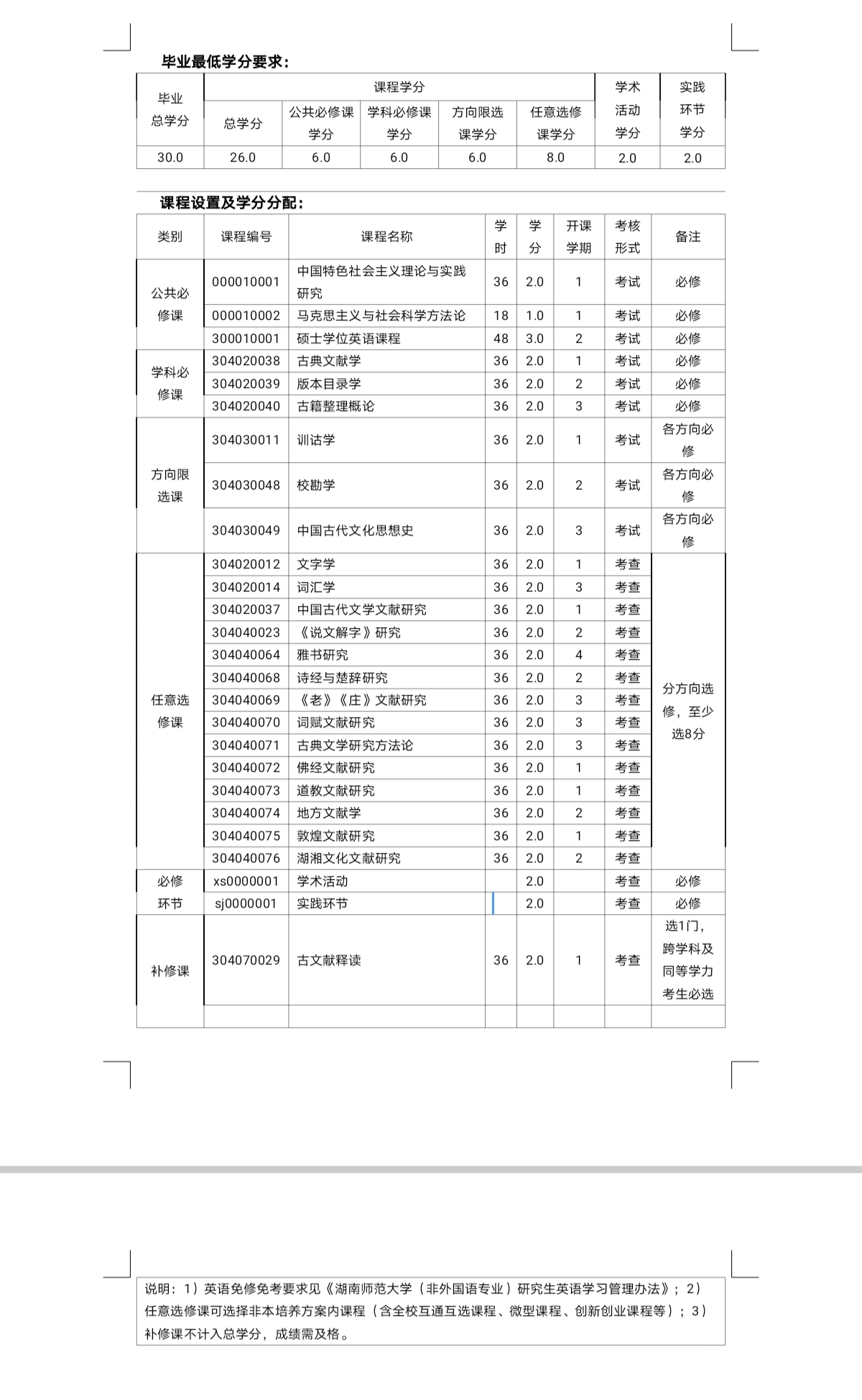 国际硕士研究生:汉语(3学分)和中国概况(3学分)为公共必修课;若在本科阶段已修过中国概况,可申请免修,但不免考,通过考试后获得学分。