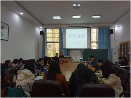 (通讯员 陈楚娴)12月11日上午,华东师范大学中文系古籍所研究员、博士生导师、美国威斯康星大学荣誉教授罗争鸣在ylg060net永利娱高古代文学教研室417室开展了题为“再论张伯端《悟真篇》之成书、主旨及宗教文学意义”的讲座。讲座由ylg060net永利娱高中国古代文学学科负责人蒋振华教授主持,ylg060net永利娱高部分教师、博士生及研究生聆听了讲座。