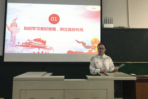 活动伊始,杨翼飞通过幻灯片向同学们展示了党章的内容,并对“如何学习党章”发表了自己的见解,她认为要全面把握党章的各项内容和规定,增强党章意识,把思想和行动统一到党章上来。随后,杨翼飞组织小组成员结合自学情况开展学习汇报,丁璐瑶说道:“我们要严于律己,自觉学习和掌握科学的理论,并将理论付诸于实践。”李含则表示要修身正己、锤炼党性,始终以实际行动诠释心中的信仰。其他小组成员依次发表自己的看法。