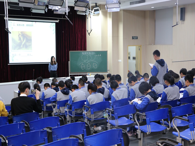 伍芳主讲《植树的牧羊人》,共设置了四个环节,涵盖了听说读写等不同教学活动。其亮点体现在板书设计以及引导性问答上,层层递进,生动有趣。喻书怡主讲《饮酒(其五)》,对文本解读深入全面,诗词积累充分,内容充实、方法平实、意蕴厚实,师生互动多,课堂气氛活跃。