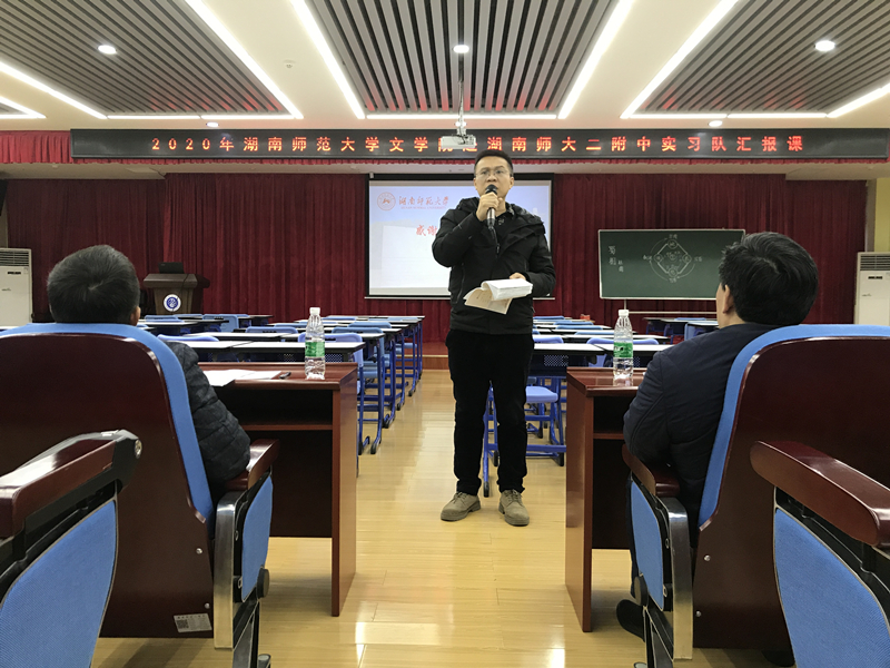 (通讯员:陈鉴茹 林晨昕 郑莹)11月26日上午,公司17级赴湖南师大二附中实习队于湖南师大二附中里仁楼8层多媒体教室开展实习教师汇报课活动。实习教师代表孙庆耀做汇报课展示,ylg060net永利娱高副经理彭万福、中文系副主任刘光成、带队老师胡海义、二附中副董事长谢旭华、语文教研组长肖和汉等领导出席,实习队全体成员参与。